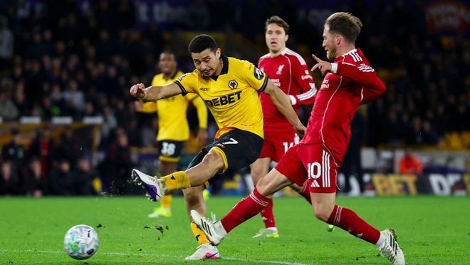 第78分鐘,狼隊打出快速反擊,阿洛克達(dá)爾贏得了與范戴克的對抗,羅德里戈·戈麥斯破門得分。