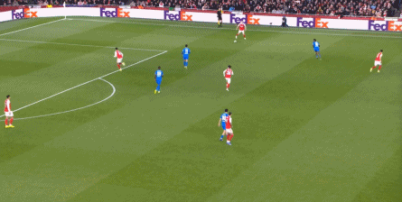 最重要的是,隨著空間被比賽形勢被拓寬,阿森納因?yàn)閼?zhàn)術(shù)思路和人員使用而導(dǎo)致的推進(jìn)和進(jìn)攻效率問題,就有望得到一定程度的緩解,部分球員的表現(xiàn)有望提振,所以在第61分鐘,阿森納就打出了一次不錯的進(jìn)攻: